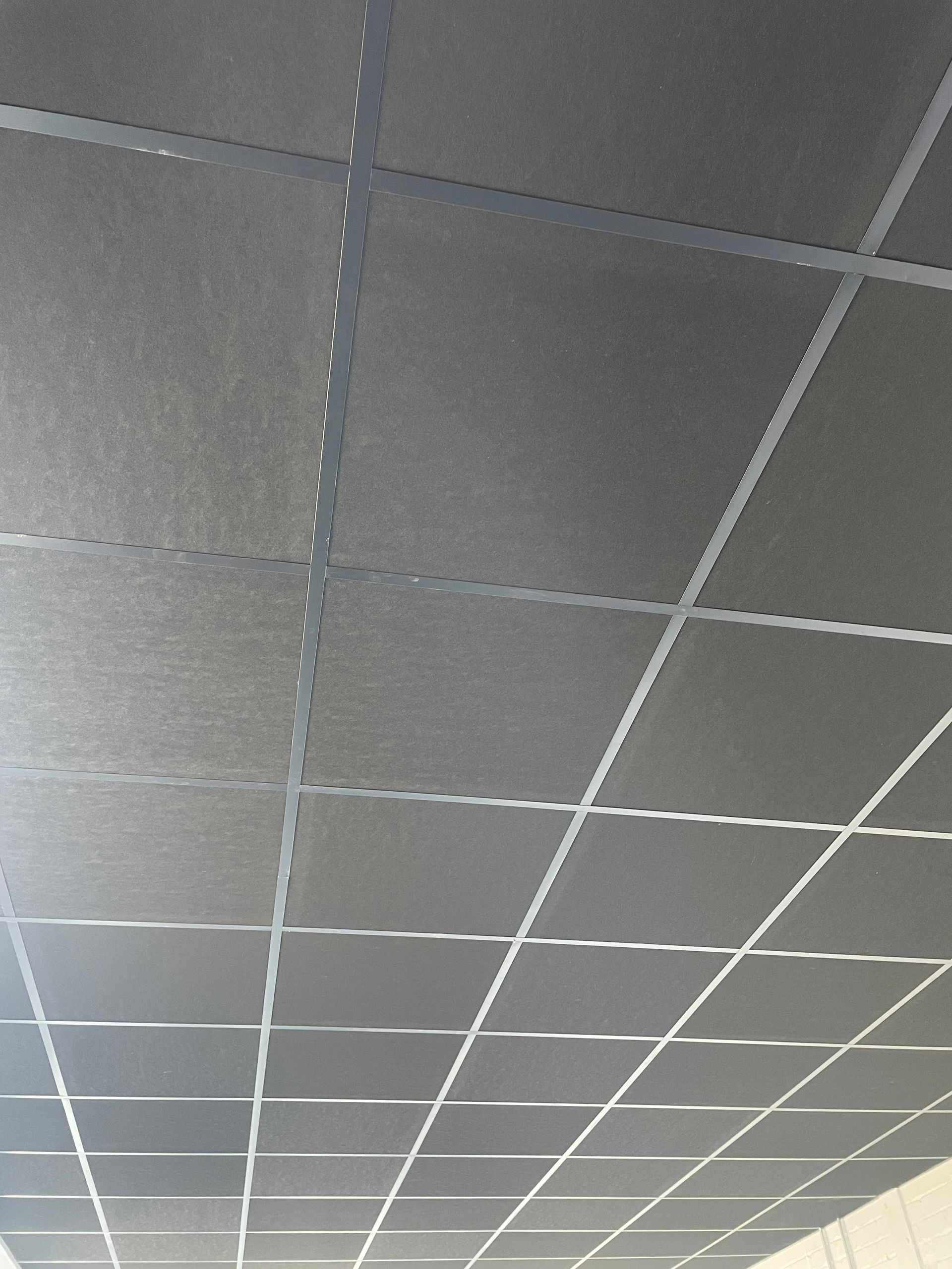 The client required a suspended ceiling for a rectangular office space within their newly purchased building. They wanted a finish that would suit their high-tech, engineering-focused brand - requesting a sleek black ceiling with black gridwork to complement an industrial-style design.
